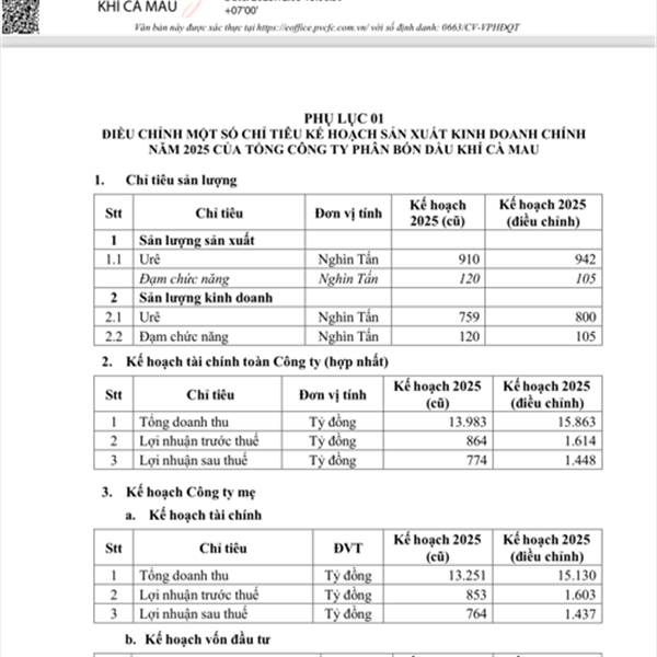 ✅ Hội đồng quản trị Tổng công ty Phân bón Dầu khí Cà Mau (Mã: DCM) mới thông qua việc điều chỉnh một số chỉ tiêu kế hoạch hoạt động sản xuất kinh doanh chính năm 2025.