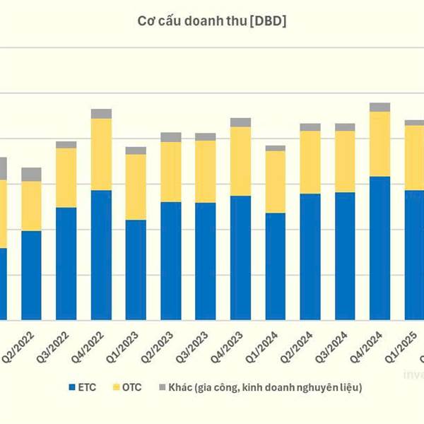 DHG: Q3/2025, doanh thu thuần và LNST của công ty đạt lần lượt 1,146 tỷ đ (+8% YoY) và 210 tỷ đ (+34% YoY) nhờ biên lợi nhuận gộp được cải thiện mạnh. Dự báo KQKD năm 2025 sẽ tăng trưởng khả quan nhờ ...Thêm