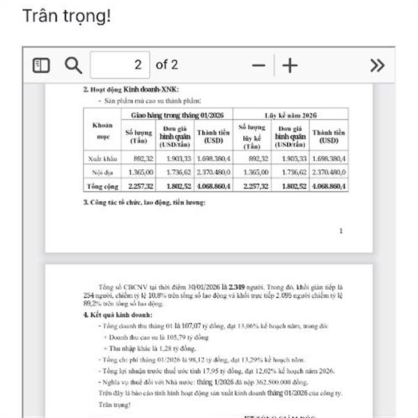 tháng 1/26 khai thác vượt trội so với cùng kì