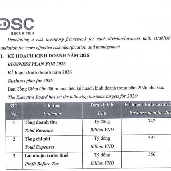 *Kế hoạch 2026 tăng 37% so với kế hoạch 2025 và tăng 3.4% so với thực hiện 2025.