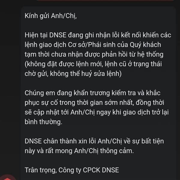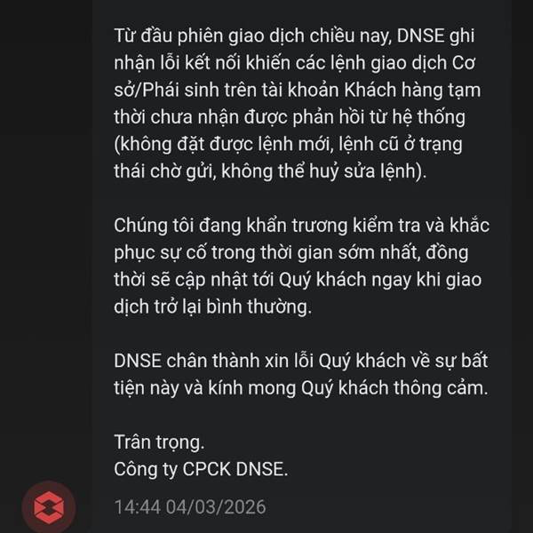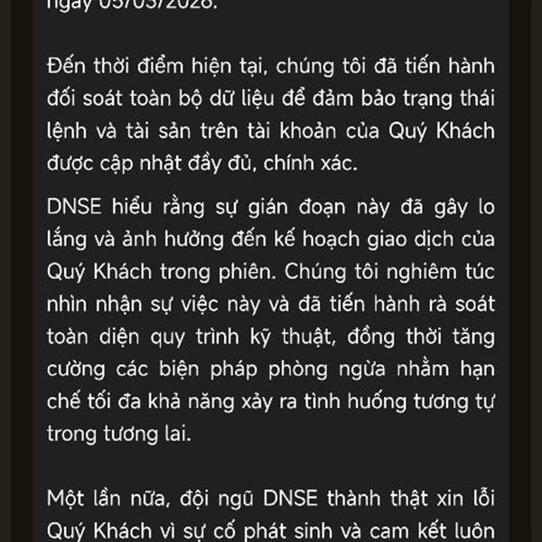 APP nào cũng có khả năng lỗi mà,Nhưng ngay phiên cần giao dịch nh như h.nay thì bực thật. Đang định chuyển hết bên vps sang DSE, Nhưng phải snghi lại. Thôi chia ra nhiều app vẫn hơn. Có sự cố gì còn c...Thêm