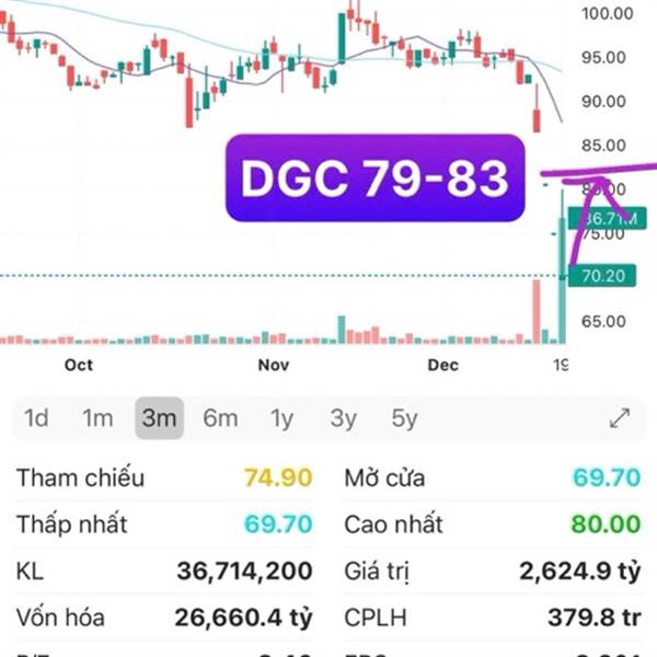 Chúc mừng ae bắt đáy 69.7 DGC nhé! Pha giảm Không Tin Chính Thống này chỉ là 1 pha Call-margin Cướp Hàng Kinh Điển thôi. Cuối tuần ra tin Đính Chính đầu tuần sau lại Như Chưa Từng có cuộc Chia Ly! Toà...Thêm