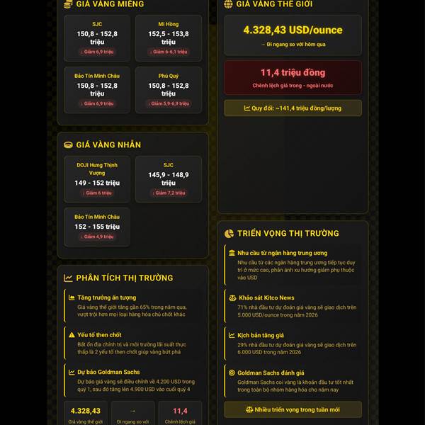 Giá vàng bật tăng mạnh trong phiên đầu tuần sau khi Mỹ bắt giữ Tổng thống Venezuela Nicolas Maduro, làm gia tăng căng thẳng địa chính t...Thêm