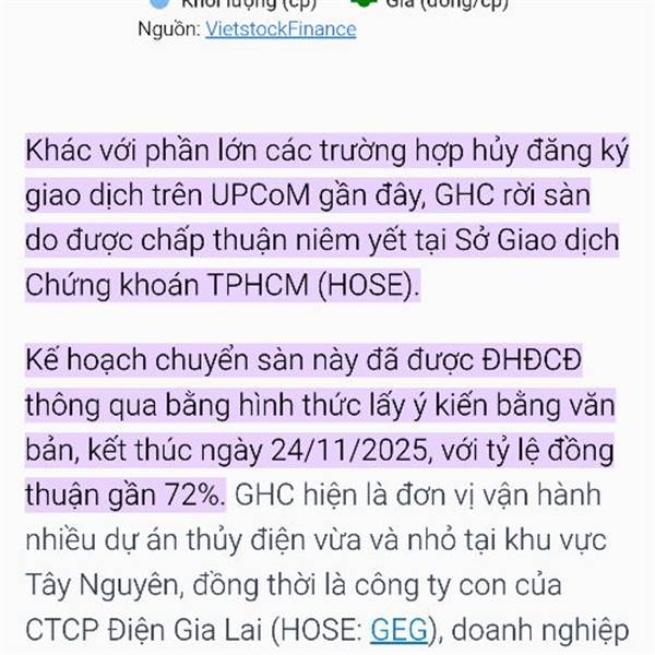 Ngày 30/01/2026 GHC chính thức niêm yết trên Hose, biên độ giao dịch ngày đầu +-20%