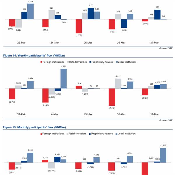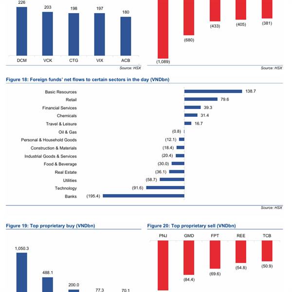 Phiên giao dịch ngày 19/3, thị trường chứng khoán Việt Nam quay lại xu hướng giảm khi áp lực bán gia tăng trên diện rộng, đặc biệt ở nhóm năng lượng, nguyên vật liệu và chứng khoán. VN-Index đóng cửa giảm 14,7 điểm, xuống mức 1.699,13 điểm, trong bối cảnh khối ngoại tiếp tục bán ròng hơn 1.000 tỷ đồng.