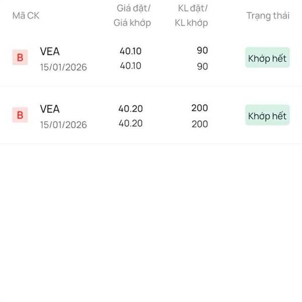 VEA là mã chốt lời thứ 2 trong danh mục đầu tư BCCL mẫu trong năm nay, ngay sau VCB chốt lời ngày hôm qua 14/01/2026 đạt hiệu suất 34%.