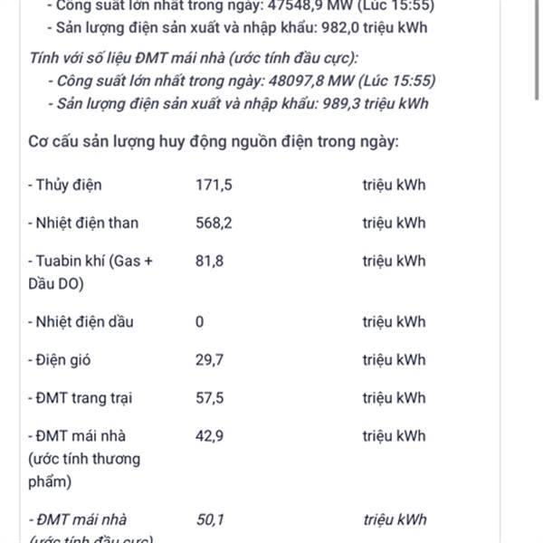 Thứ 7 mà điện than chạy 570 triệu Kwh - con số lớn nhất từ đầu năm ???