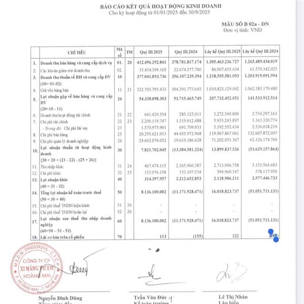 Về việc ký Hợp đồng cung cấp dịch vụ Soát xét báo cáo tài chính cho kỳ hoạt động 06 tháng kết thúc ngày 30/6/2025 và Kiểm toán báo cáo tài chính cho năm tài chính kết thúc ngày 31/12/2025 của Công ty CP Xi măng Vicem Hoàng Mai