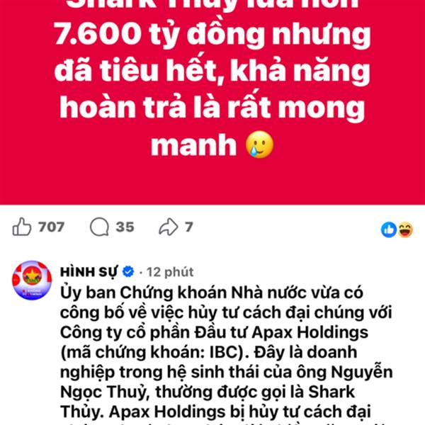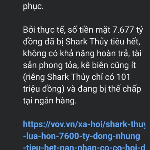 Cơ quan Cảnh sát điều tra Bộ Công an đề nghị bị hại của Shark Thủy liên hệ với công an để đảm bảo quyền lợi của mình trong vụ án lừa đảo chiếm đoạt tài sản.