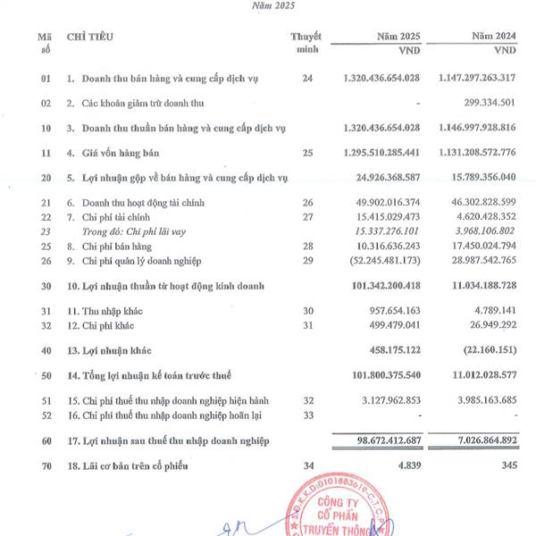 TNV lụm về 30 tỷ từ khi ký kết hợp tác với điện máy xanh kinh doanh và bán hàng tăng trưởng mạnh. 2025 LNST tầm 40 tỷ cho thấy sự hồi sinh UBND. hà nội đang làm thủ tục thoái vốn đầu năm 26 là lên kệ đ...Thêm