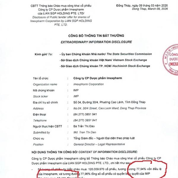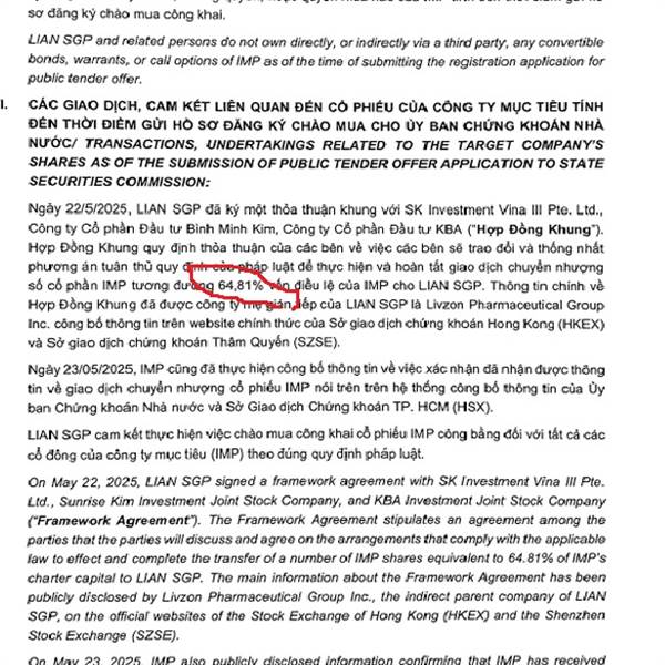 Lợi nhuận xác định từ giá chào mua cố định: Tập đoàn Livzon đã công bố chào mua công khai cổ phiếu IMP với giá 57.400 đồng/CP. Nếu giá thị trường hiện...Thêm