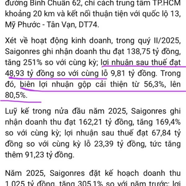 Luỹ kế 6 tháng đầu năm 2025, Công ty Cổ phần Bất động sản Sài Gòn Vina (Land Saigon, mã LSG - UPCoM) lỗ 31,16 tỷ đồng, điều này khiến Land Saigon cách rất xa kế hoạch có lãi trong năm tài chính 2025.