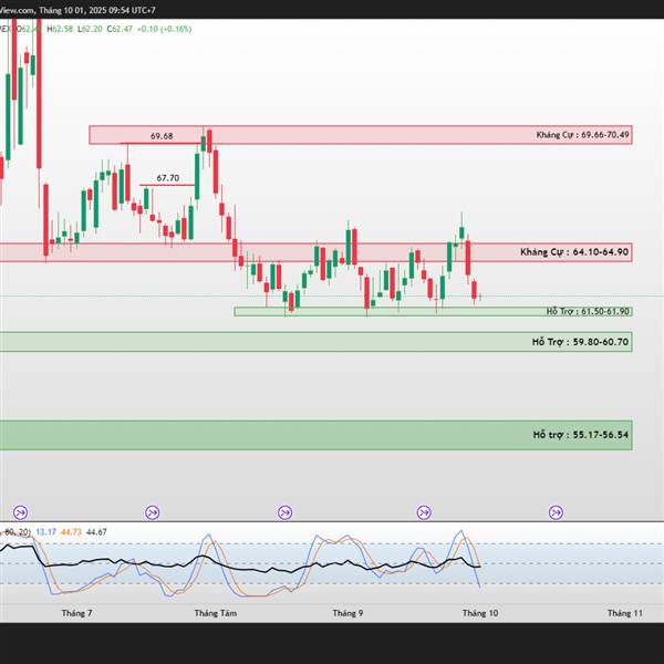 THỊ TRƯỜNG DẦU WTI NGÀY 08/09 -------------------- Giá dầu thô WTI tương lai tăng lên 62,1 USD/thùng vào thứ Hai, chấm dứt chuỗi ba ngày giảm sau khi OPEC+ đồng ý tăng sản lượng thêm nhưng với tốc độ kh...Thêm