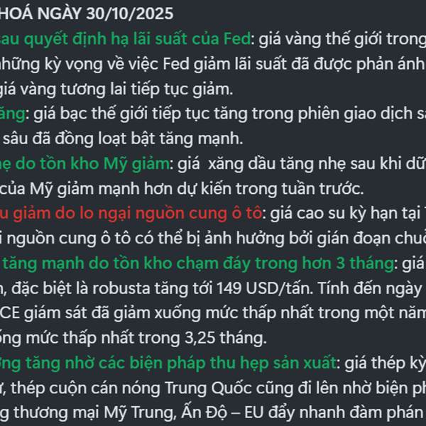 THỊ TRƯỜNG HÀNG HOÁ NGÀY 30/10/2025