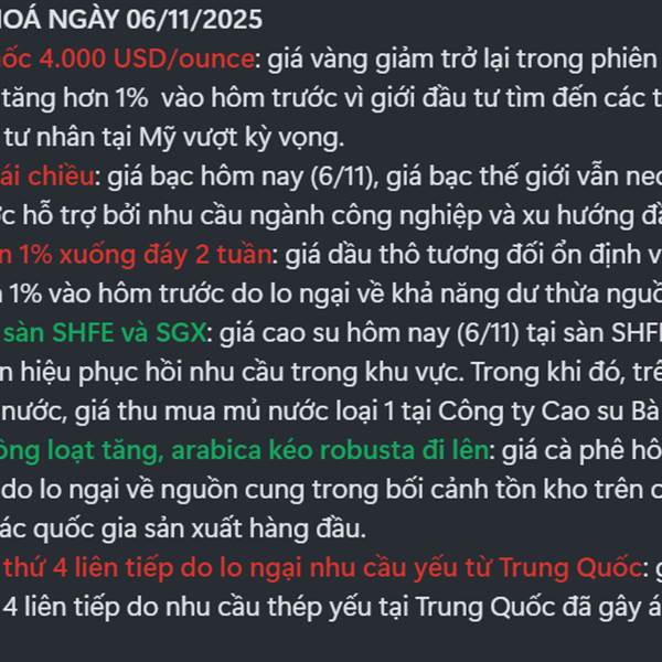 THỊ TRƯỜNG HÀNG HOÁ NGÀY 06/11/2025