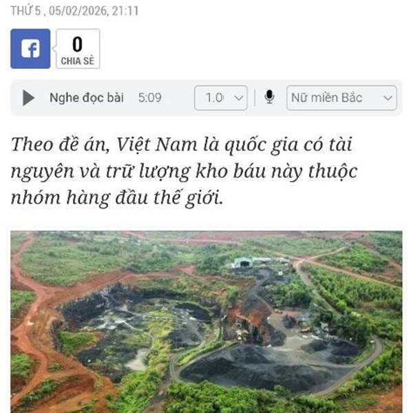 Mỹ sắp khởi động kho dự trữ khoáng sản thiết yếu trị giá 12 tỷ USD Dự án Project Vault dự kiến sẽ kết hợp 1,67 tỷ USD vốn tư nhân với khoản vay 10 tỷ USD từ Ngân hàng Xuất-Nhập khẩu Mỹ để thu mua và dự...Thêm