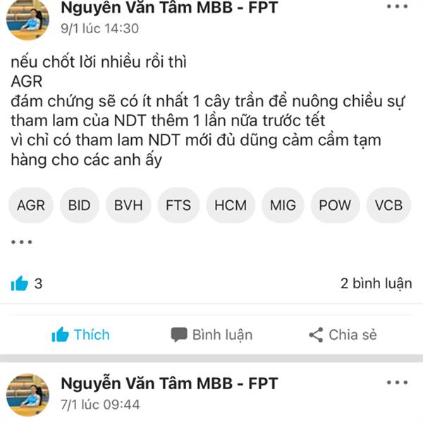 nếu chốt lời nhiều rồi thì AGR đám chứng sẽ có ít nhất 1 cây trần để nuông chiều sự tham lam của NDT thêm 1 lần nữa trước tết vì chỉ có tham lam NDT mới đủ dũng cảm cầm tạm hàng cho các anh ấy