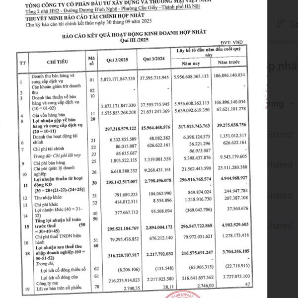 Với doanh thu thuần đột biến và khoản hoàn nhập chi phí quản lý, CTCP Tập đoàn NRC (HNX: NRC) lãi ròng hợp nhất gần 24 tỷ đồng trong quý 3/2025, trong khi cùng kỳ lỗ gần 6 tỷ đồng.
