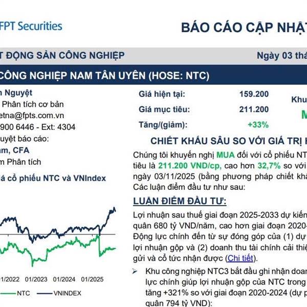 Luận điểm đầu tư – NTC (CTCP KCN Nam Tân Uyên):