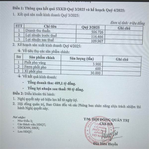 PAT – Lợi nhuận quý III/2025 tăng mạnh nhờ giá bán phốt pho vàng cải thiện