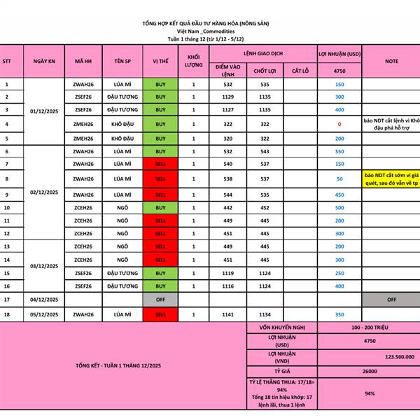 CẬP NHÂT LÚA 10/12/2025 Mua ( Buy ) Lúa Mì hợp đồng tháng 3/26: ZWAH26 👨💻 Điểm vào lệnh : 528 -529 🔹 Chốt lời : 540 - 545 🔸 Cắt lỗ: 523 KHÁNH TRUNG - HÀNG HÓA PHÁI SINH HCT