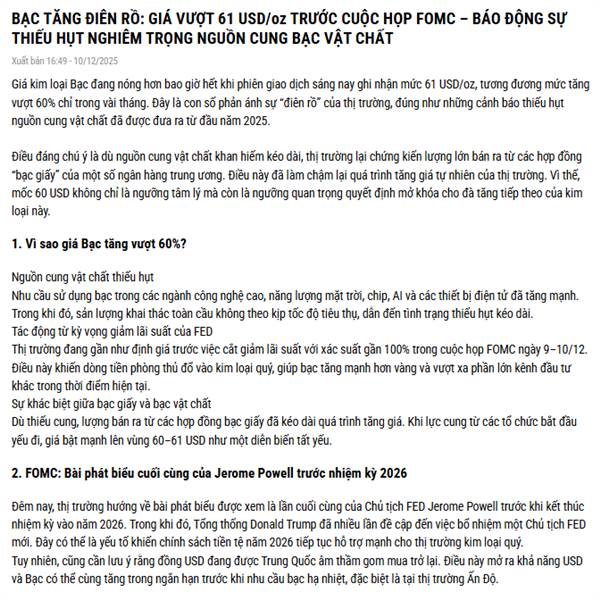 Các nhà phân tích của Sucden Financial cho rằng giá đồng sẽ có những nhịp tăng mạnh xen kẽ các pha tích lũy nông, vì lực bán ở vùng giá hiện tại khá yếu. -> Thị trường đang kỳ vọng Fed cắt giảm lãi suấ...Thêm