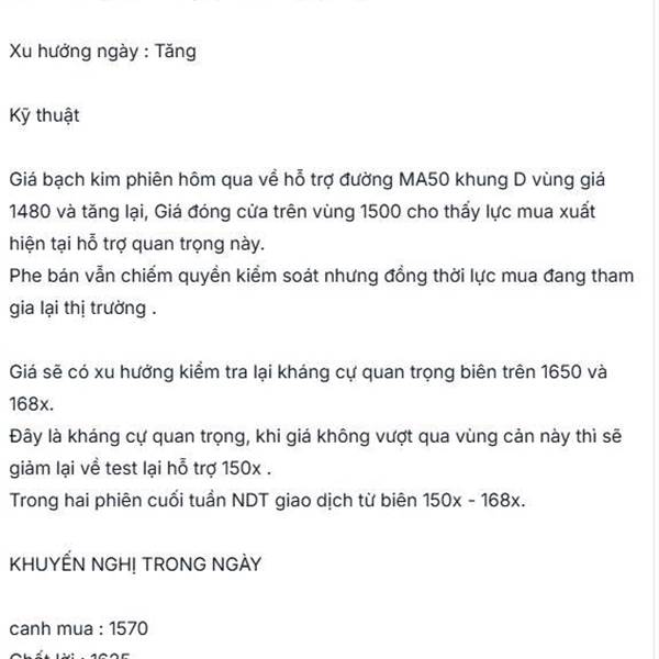 - Bạch kim tiếp tục duy trì xu hướng tăng chủ đạo, ghi nhận đà tăng ấn tượng trong những tuần gần đây.
