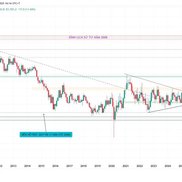 Tuần trước, bạch kim tiếp tục giữ vững xu hướng tăng trung hạn trong kênh giá đi lên và đã có cú bật mạnh từ vùng hợp lưu MA50–SONIC, cho thấy lực mua...Thêm