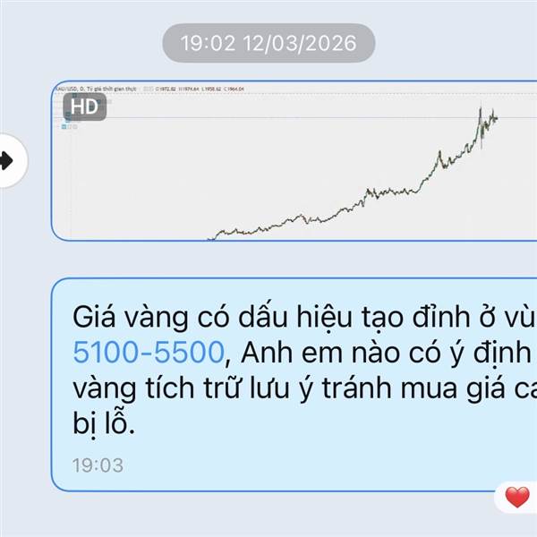 Giá vàng tiếp tục giảm mạnh sau khi CK VDF báo Vàng tạo đỉnh 2 tuần trước.