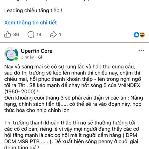 Nay và sáng mai sẽ có sự rung lắc và hấp thu cung cầu, sau đó thị trường sẽ kéo lên nhanh thì chiều nay, chậm thì chiều mai, hồi phục thanh khoản thấp - lên trong nghi ngờ tới ra Tết . Sẽ kéo mạnh để ...Thêm
