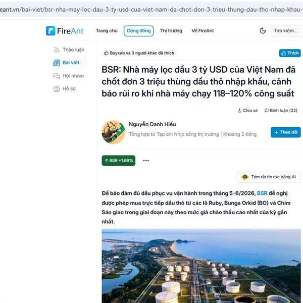 🔔🔔🔔: Giá dầu tăng phi mã! BSR đã chủ động được nguồn cung dầu đến hết tháng 5/2026 với pa.tích cực nhất không phụ thuộc trực tiếp và ảnh hưởng Trung đông. - Công suất nhà máy lọc dầu dung quất 3 tỷ ...Thêm