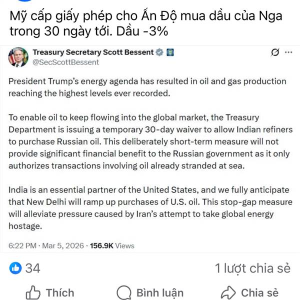 Ấn Độ khôn lỏi phải quay lại mua dầu Nga. Mọi người nên nhớ Mỹ cấm Ấn Độ mua dầu Nga giờ ký giấy cho mua lại thì chứng tỏ thị trường dầu khí thế giới sắp khủng hoảng nghiêm trọng. Em đứ mức rủi ro lên...Thêm