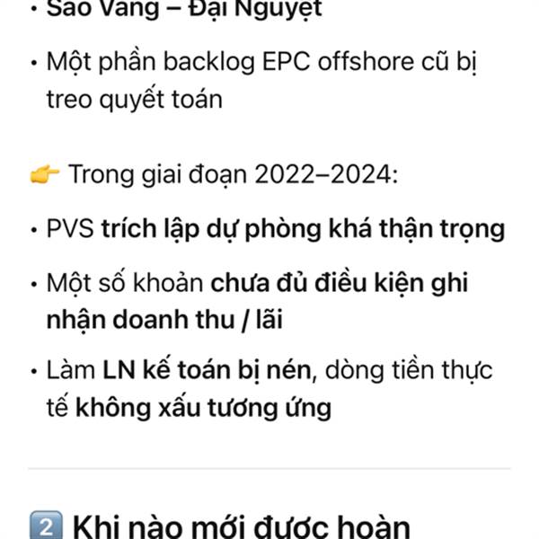Đợt này PVD dẫn sóng sẽ kéo theo PVS. Bởi vì cá mập quỹ ngoại đang gom PVS do backlog đạt khoảng 3 tỷ đô la mỹ. Quý 1/2026 khả năng cao sẽ hoàn nhập khoảng 600-700 tỷ dự phòng. Đấy là lý do doanh thu ...Thêm