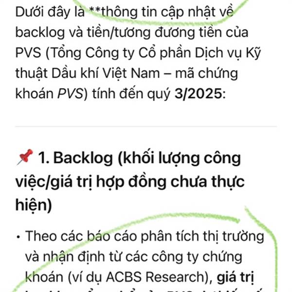 PVD 35k. PVS 45k được không các bác. Trân trọng. PVS P/B phải 1,5 lần hợp lý nhé các bác. Trân trọng. Backlog vậy thì rẻ quá.