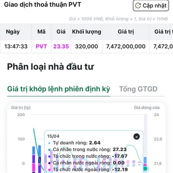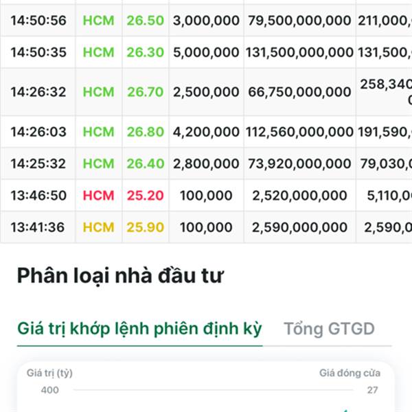 Ví dụ: các bạn cứ xem cổ phiếu HCM thoả thuận ngày hôm qua, hôm nay đóng cửa 26.9
