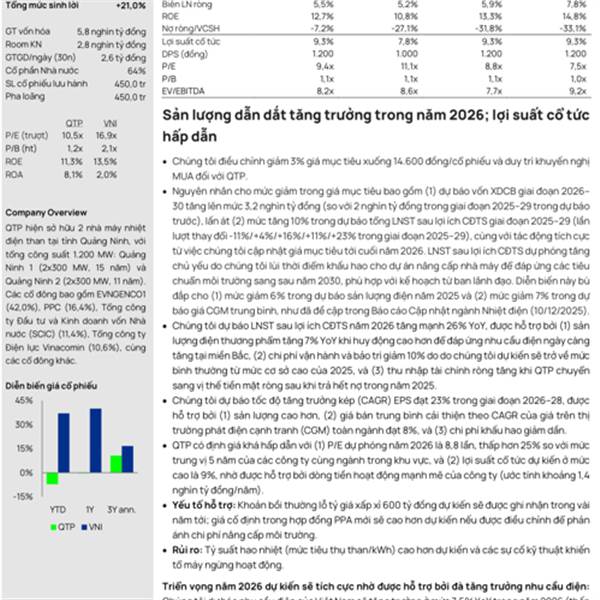 Được biết, EVN đang tái đánh giá các nhà máy điện hết khấu hao, QTP cũng sẽ phải đánh giá lại tăng tài sản nhà máy, tính vào giá trị tài sản doanh nghiệp ...Thêm