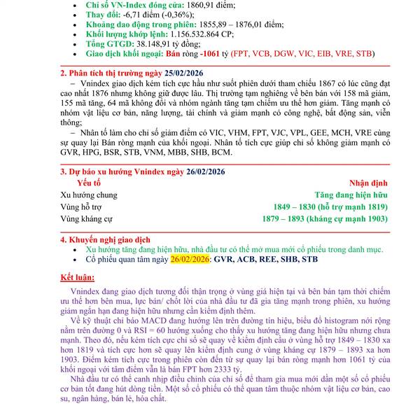 4 doanh nghiệp trên thị trường chứng khoán gồm CTCP Cơ Điện Lạnh, CTCP Thương mại và Vận tải Petrolimex Hà Nội. CTCP Kim loại màu Thái Nguyên – Vimico và CTCP Thủy điện Miền Nam sẽ thực hiện chốt quyền thực hiện chi trả cổ tức năm 2025 bằng tiền mặt trong ngày 26/02/2026.