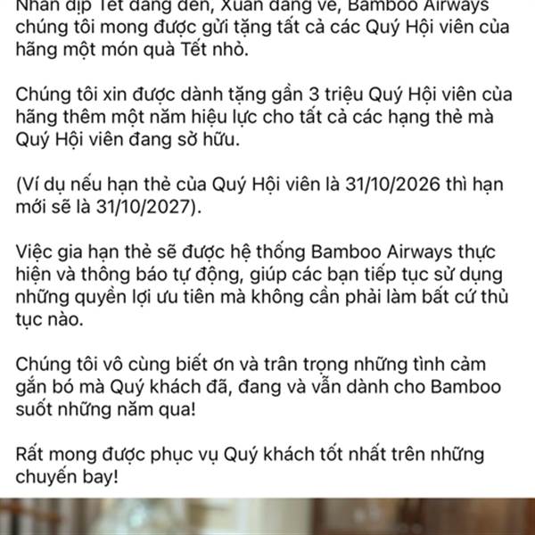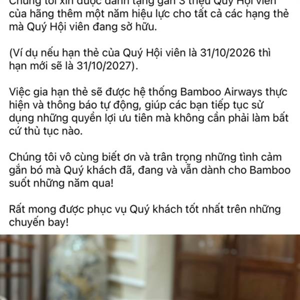 Trên trang Facebook cá nhân, ông Trịnh Văn Quyết vừa bất ngờ công bố chính sách mới dành cho hội viên của Bamboo Airways