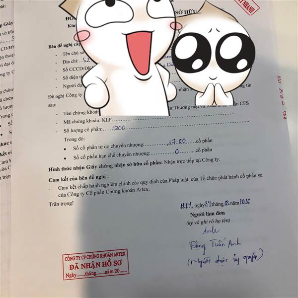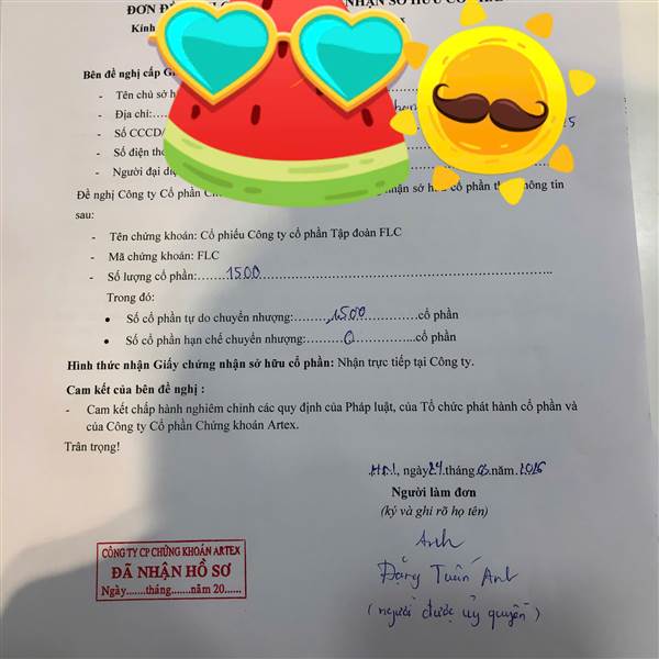 Em ở Hà Nội có nhận ủy quyền làm giấy chứng nhận sở hữu cổ phần của cổ phiếu họ FLC nhé, bác nào không thể đến trực tiếp Artex làm được thì có thể liên hệ em.