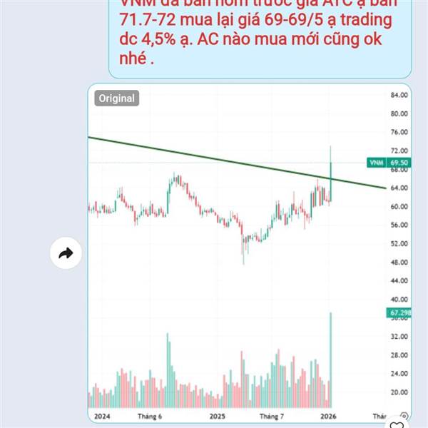 trong khi SAB người ta 2 cây trần liên tục, chia cổ tức 2k và nay chỉ có đỏ nhẹ. thì VNM mới trần 1 cây và nay đóng nến âm gần 2%. SCIC đợi tím vài cây rồi lên bài thoái vốn cũng được mà. haiz. đứa co...Thêm