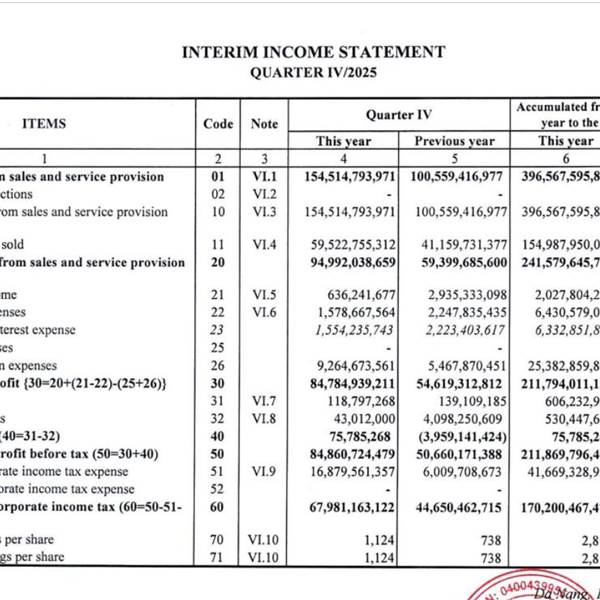 Update BCTC quý 4 lợi nhuận tăng mạnh