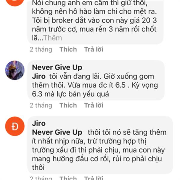 Có thằng Ng u hô hào lên 1x-2x-4x mới buồn cười, mua 6.9, mua thêm 6.5-6.3, lỗ lòi ra mà cứ ẳ ng, như người khác biết sai rồi rút kinh nghiệm, còn nó thì không đâu, vẫn không chấp n...Thêm