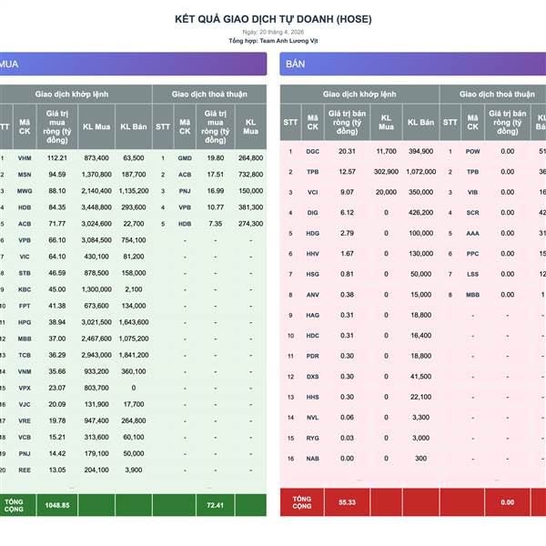 TỔNG KẾT THỊ TRƯỜNG 20/04/2026