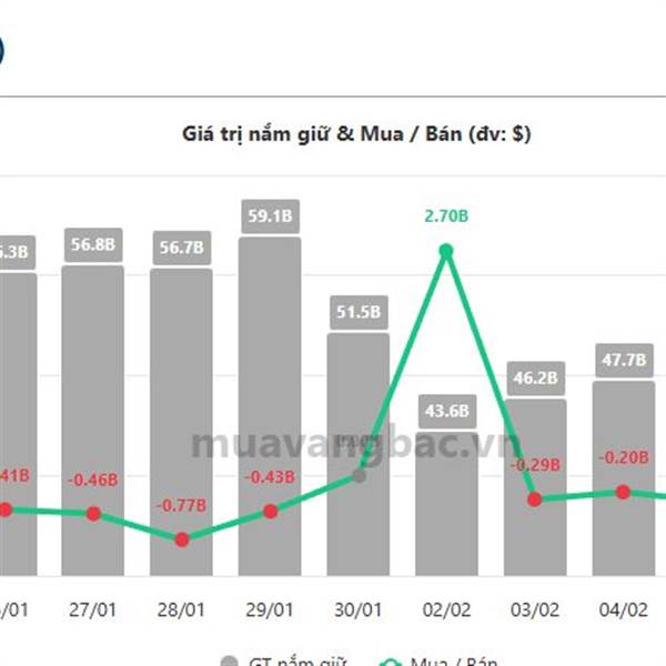 Quỹ bạc lớn nhất thế giới iShares Silver Trust (SLV) đã mua ròng thêm khoảng 25 tấn bạc trong phiên 10/2, tương đương 67 triệu USD, nâng tổng lượng nắm giữ lên 16,21 nghìn tấn, trị giá khoảng 42,9 tỷ ...Thêm