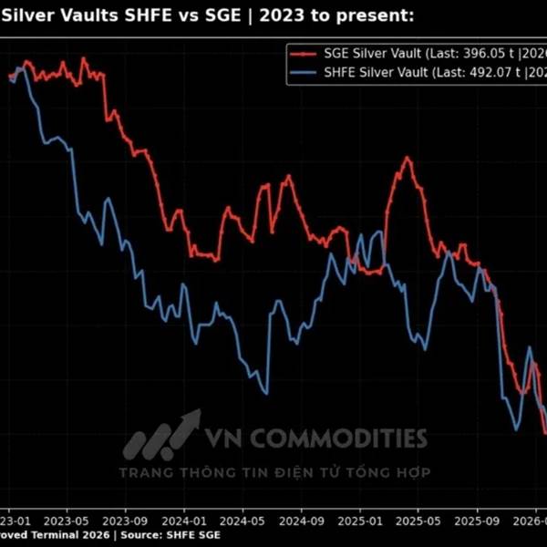Dữ liệu cho thấy tồn kho bạc tại Trung Quốc ghi nhận nhịp phục hồi ngắn hạn, với tổng lượng trên hai sàn tăng lên khoảng 888 tấn, chủ yếu đến từ mức tăng mạnh tại SHFE. Tuy nhiên, xu hướng tổng thể tr...Thêm