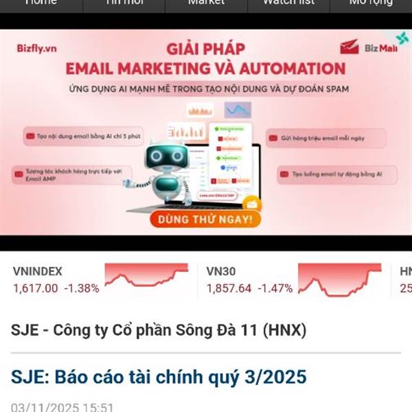 Wed sông đà 11 vừa truy cập lại được rồi nhé. BCTC Q3 vẫn là lãi 2200% các bạn nhé. Chứ không phải không truy cập được như sáng nay, có thể tin này làm các bạn hoảng loạn bán tháo, Mình vẫn tin rằng c...Thêm
