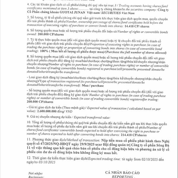 SJG có thực hiện quyền mua hay bỏ quyền mua SJE mà không thấy công bố thông tin