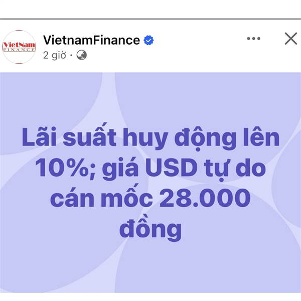 (VNF) - Một số ngân hàng triển khai chương trình lãi suất đặc biệt, chính sách cộng thêm lãi suất, đẩy lãi suất huy động lên tới 10%/năm. Trong khi đó, giá USD tự do chính thức cán mốc 28.000 đồng.