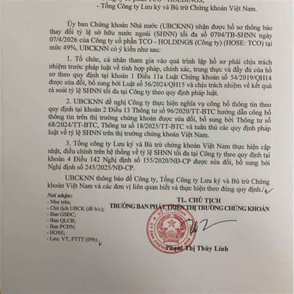 Việc TCO nới room ngoại lên 49% mang lại lợi ích lớn trong việc thu hút vốn đầu tư nước ngoài dài hạn, nâng cao năng lực tài chính và tiếp cận quản trị tiên tiến. Chính sách này giúp doanh nghiệp cải thiện cấu trúc vốn, tăng giá trị cổ phiếu, đồng thời thúc đẩy minh bạch thông tin và tuân thủ các chuẩn mực quốc tế. Cụ thể, các lợi ích chính bao gồm: Huy động vốn dài hạn và tăng cường năng lực tài chính: Mở room 49% giúp TCO thu hút nguồn vốn ngoại dồi dào, giảm áp lực phụ thuộc vốn vay trong ...
