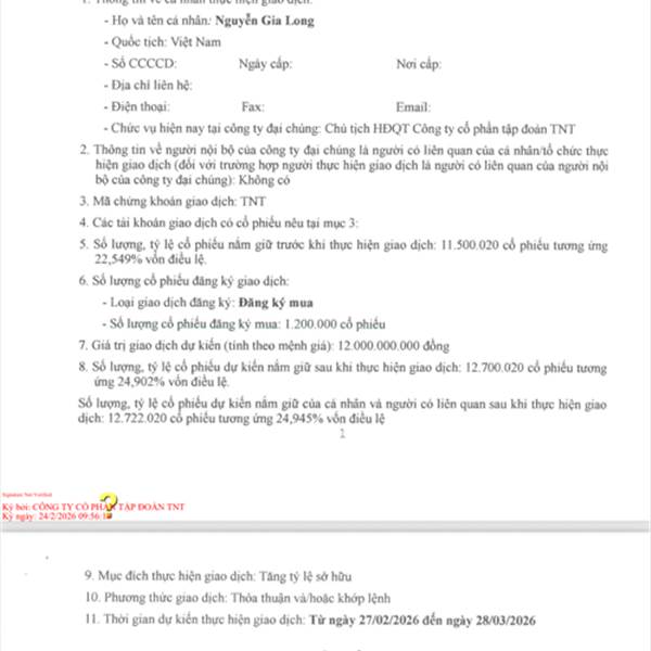 So với cùng kỳ quý 4/2024, kết quả kinh doanh hợp nhất quý 4/2025 của TNT cho thấy sự tăng trưởng mạnh mẽ ở doanh thu nhưng chi phí cũng tăng theo, dẫn đến lợ...Thêm
